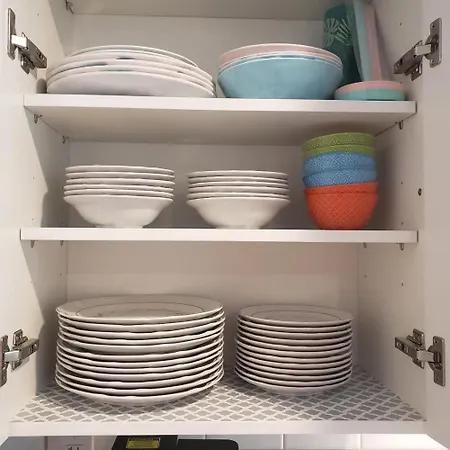 Microondas e refrigerador, bem como outras comodidades auto-suficientes, como máquinas de café/chá, são fornecidos numa cozinha totalmente equipada.
